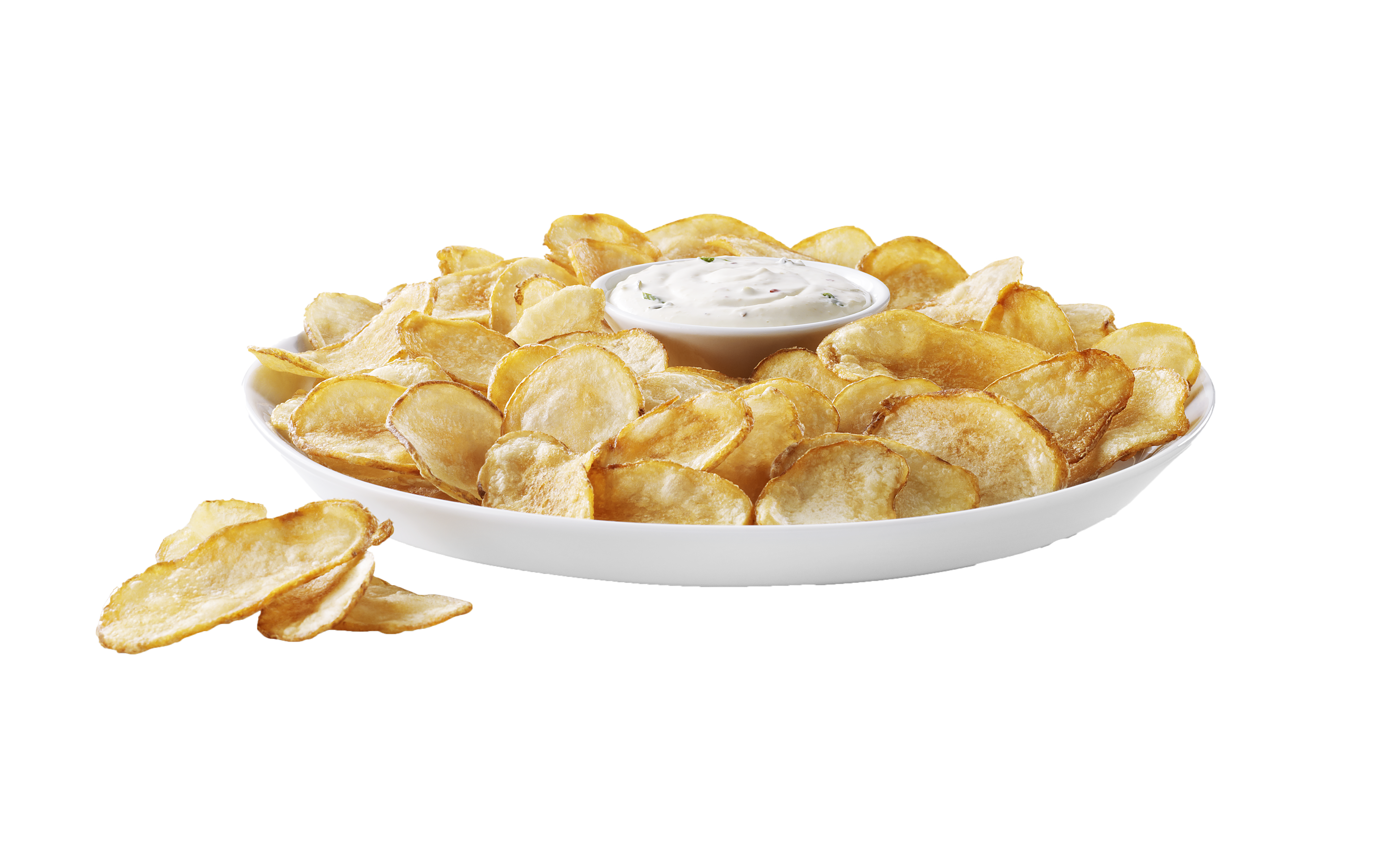 Minces tranches de pommes de terre épicées et croustillantes accompagnées de notre trempette cactus exclusive.