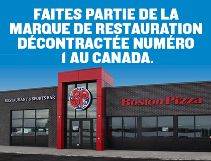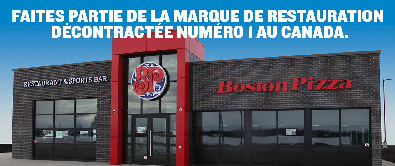Vous êtes un leader doté d’un solide sens des affaires et vous êtes passionné par l’industrie de la restauration, alors pourquoi ne pas devenir un franchisé Boston Pizza? Notre concept multithématique comprend un bar sportif animé, une salle à manger familiale, une terrasse trois saisons et une plateforme inégalée pour les livraisons et les commandes à emporter, bref tout ce qu’il faut pour obtenir du succès!