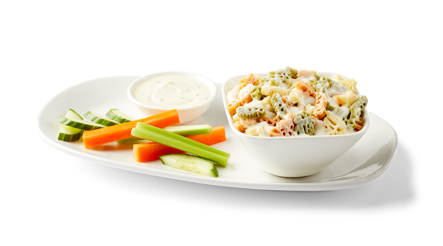 A 'big kids' portion of our colourful bug-shaped pasta, pizza mozzarella and Alfredo sauce.