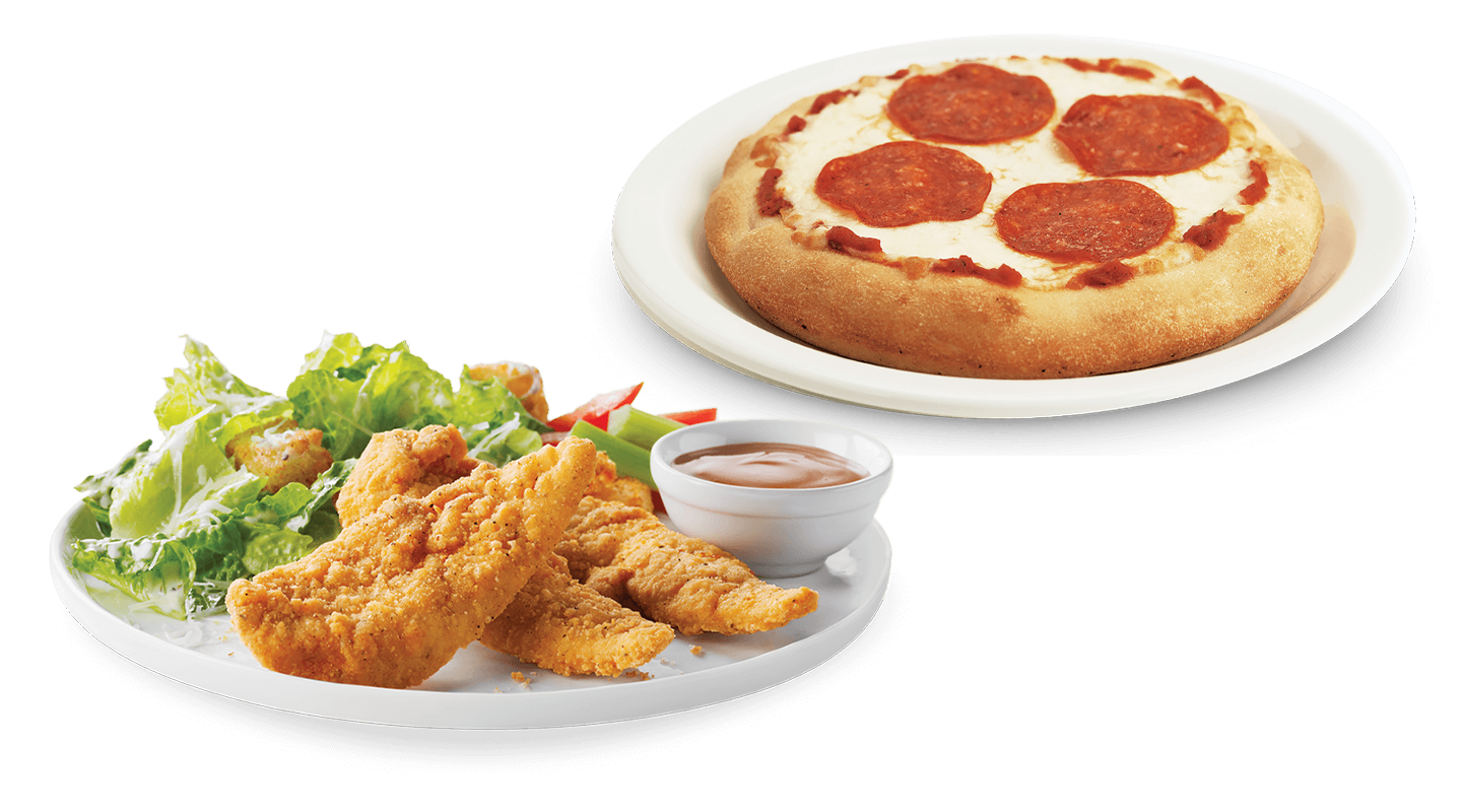 The perfect size for a hungry kid. Pizza sauce, pizza mozzarella, and any two toppings you want.